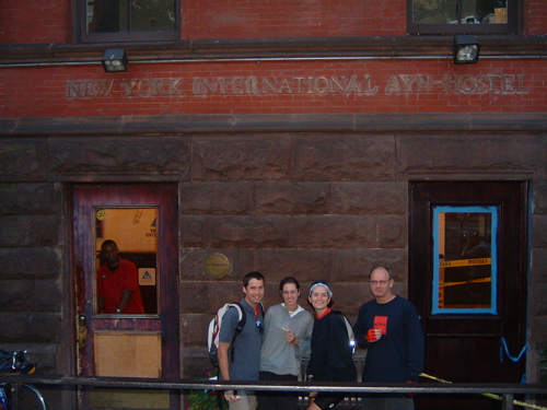 | Great choice for a cheap stay in New York, close to Central Park. (Photo: Jim Hyde, Cathy Dowding, Kristin Staats and Jerry preparing for the New York Century bike ride.) |