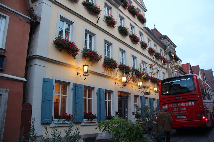 | After spending a week on a ship, it was an delight to not only stay in this historic hotel, but to score an upper floor corner suite over looking the Tauber valley. It has been a hotel since 1479 and is in the heart of this charming medieval town. |