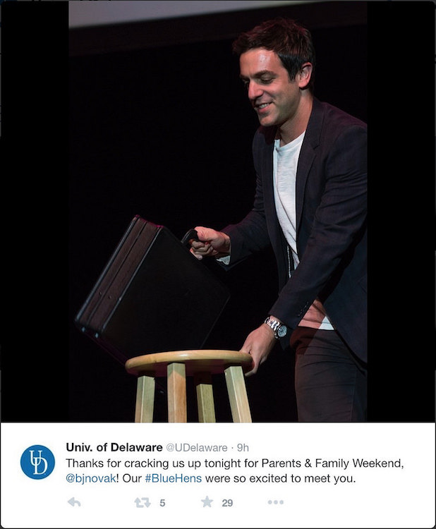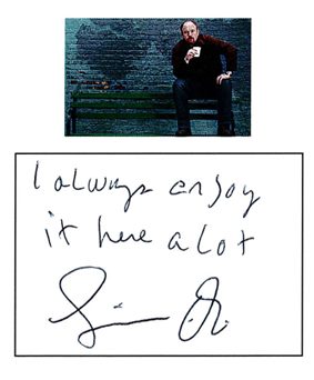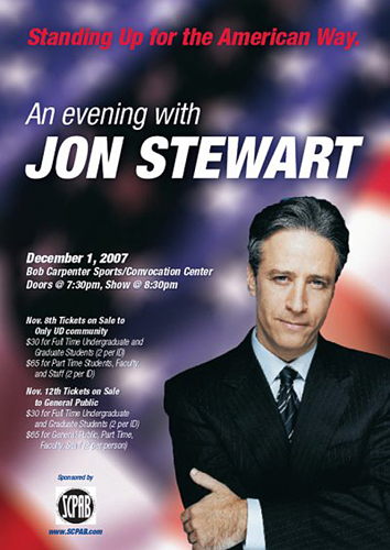 Opened with a well informed riff on Delaware. Followed with the usual political stuff, but the highlight for me were his takes on kids and dogs. Some clever ad-libs and he handled hecklers well. Got a lot of press including this and a mention on the Daily Show of a giant promotion poster.
