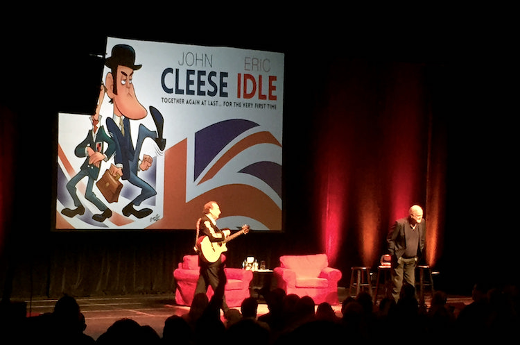 Stories, skits, stand-up and singalongs! Began with a greatest hits film clip, followed by an interesting background on their careers and they performed a couple of classic skits. Second half had each do a solo set with John doing an extended string of "racist" jokes and Eric signing his greatest hits, and ended with a Q & A. Left us with he ear-worm singalong of "Always Look On The Bright Side of Life!"