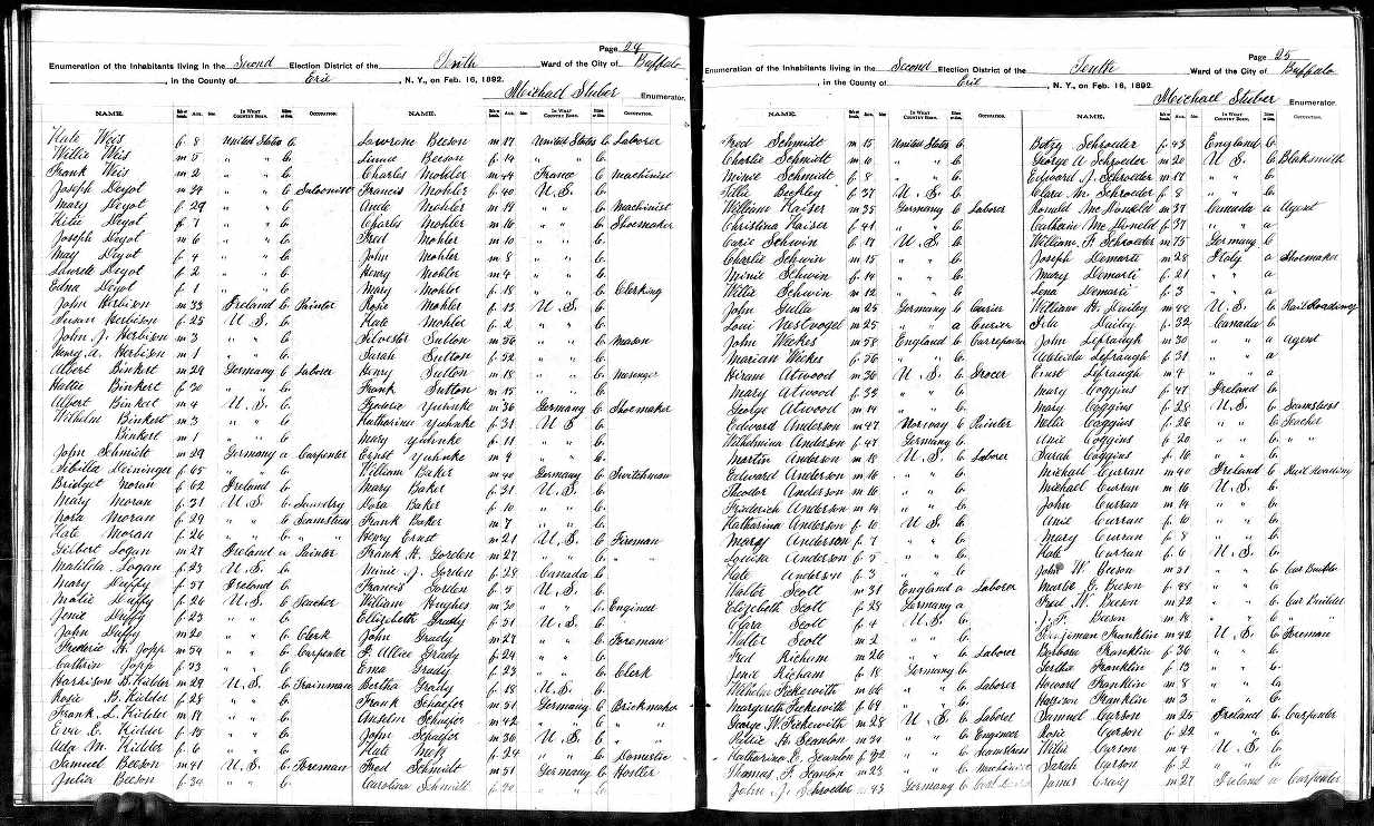 64. “1892 New York State Education Department, Office of Cultural Education, New York State Census. Albany, NY- New York State Library,” Buffalo, Erie, New York, 16 Feb 1892.