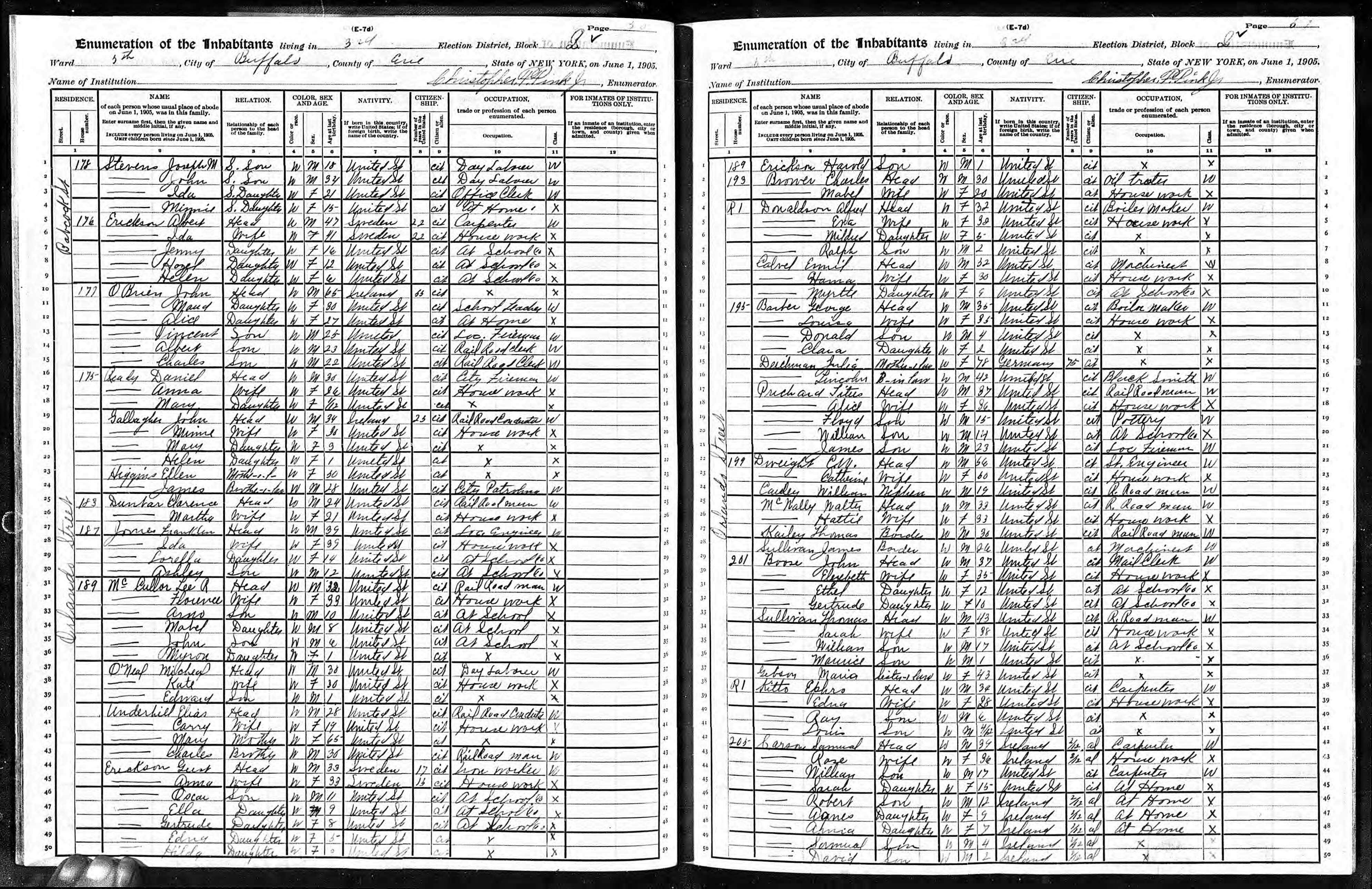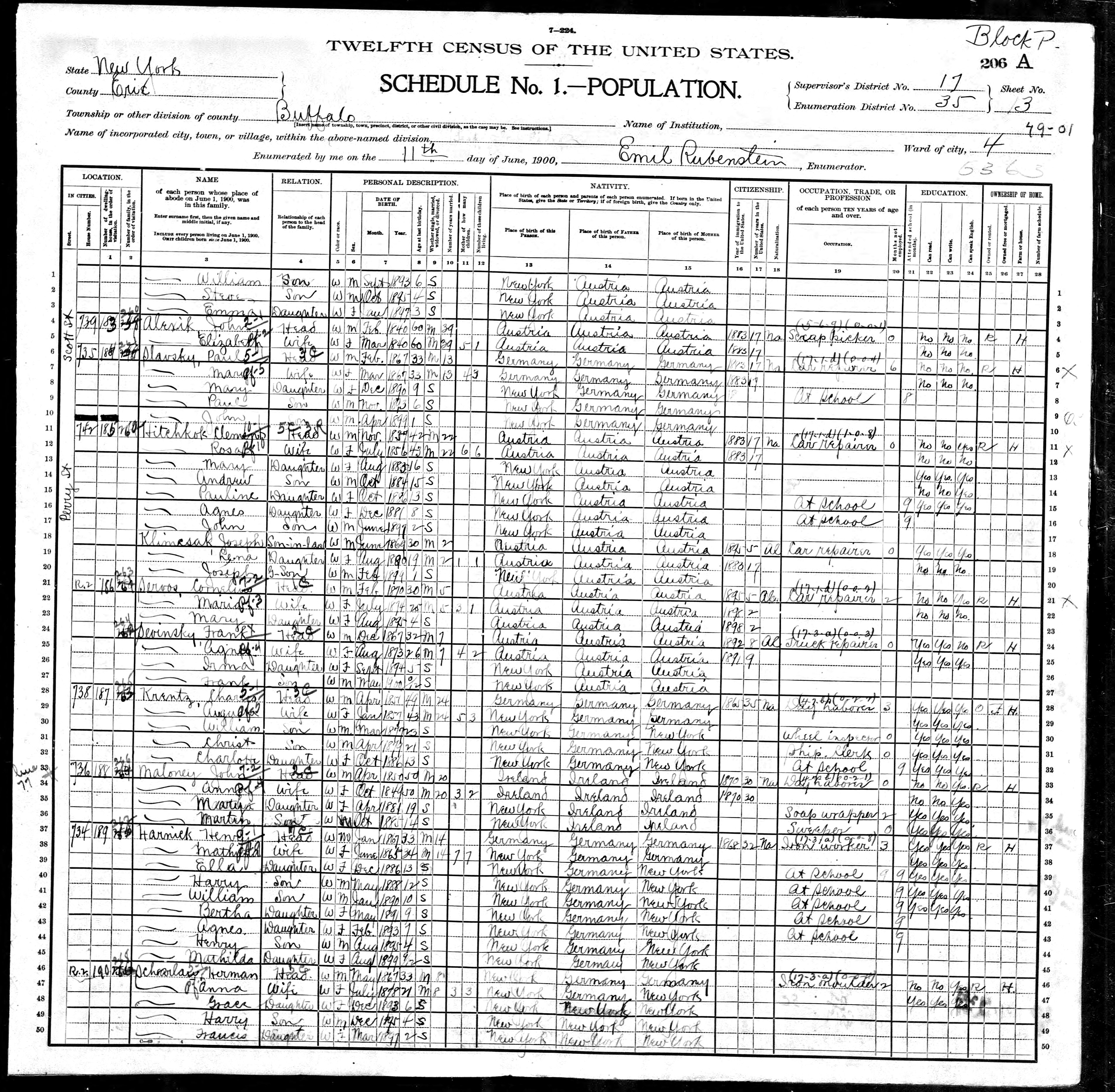 72. “1900 Buffalo Ward 4, Erie, New York; Roll T623_1025; Page: 3A; Enumeration District: 35,” 11 Jun 1900.