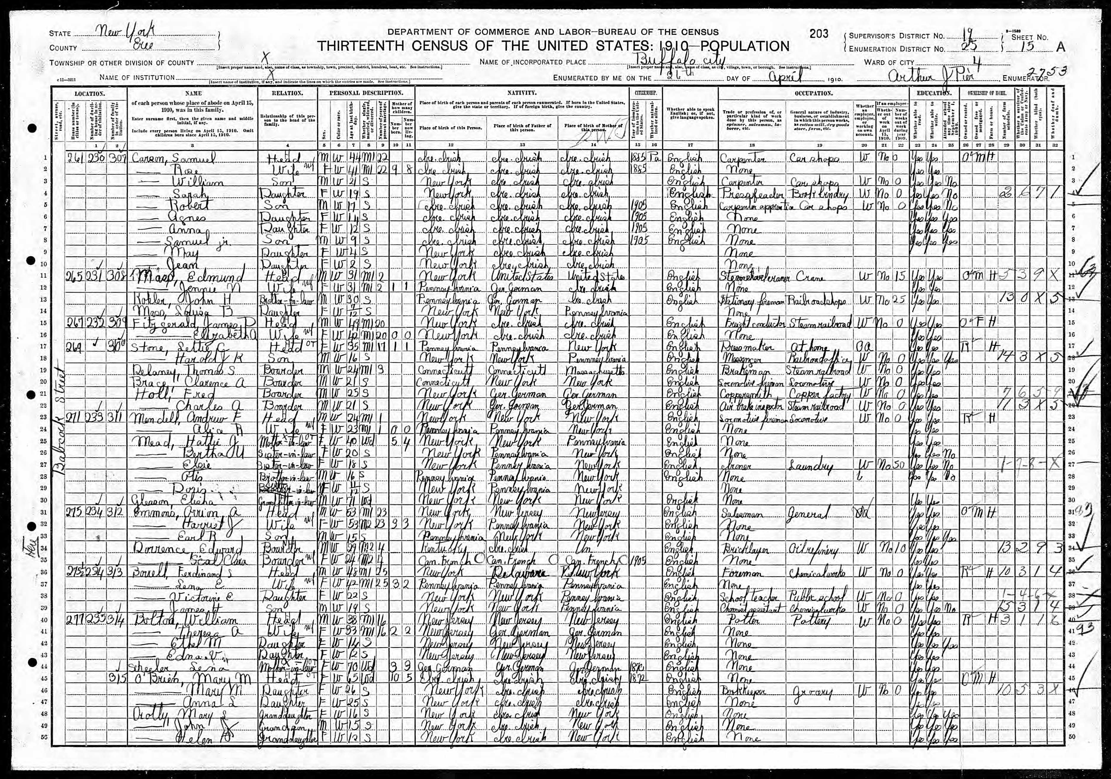 File: 1910 Buffalo Ward 4, Erie, New York; Roll- T624_941; Page- 15A; Enumeration District- 0025; ; FHL microfilm- 1374954