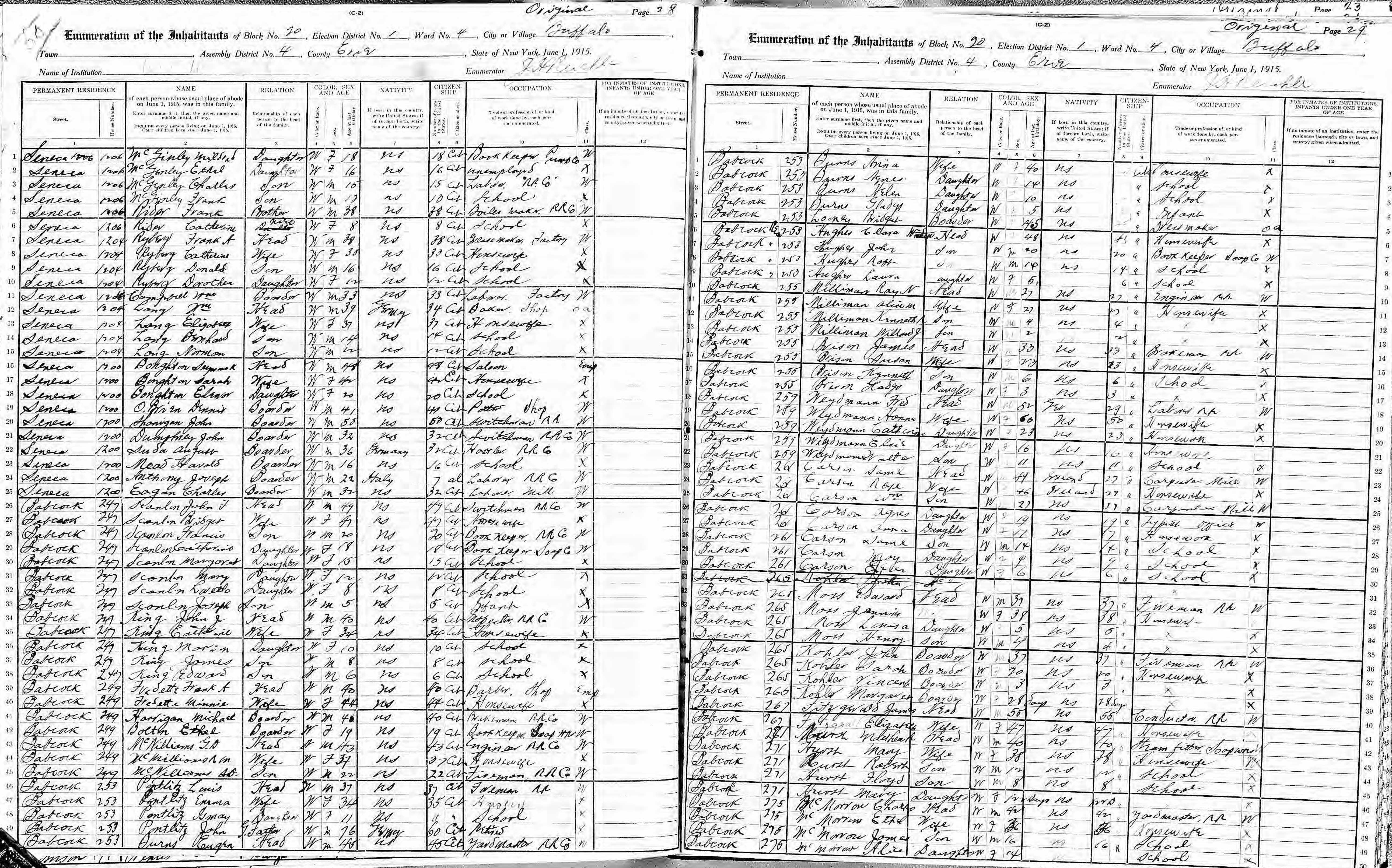 File: 1915 New York, Election District- 01; Assembly District- 04; City- Buffalo Ward 04; County- Erie; Page- 29
