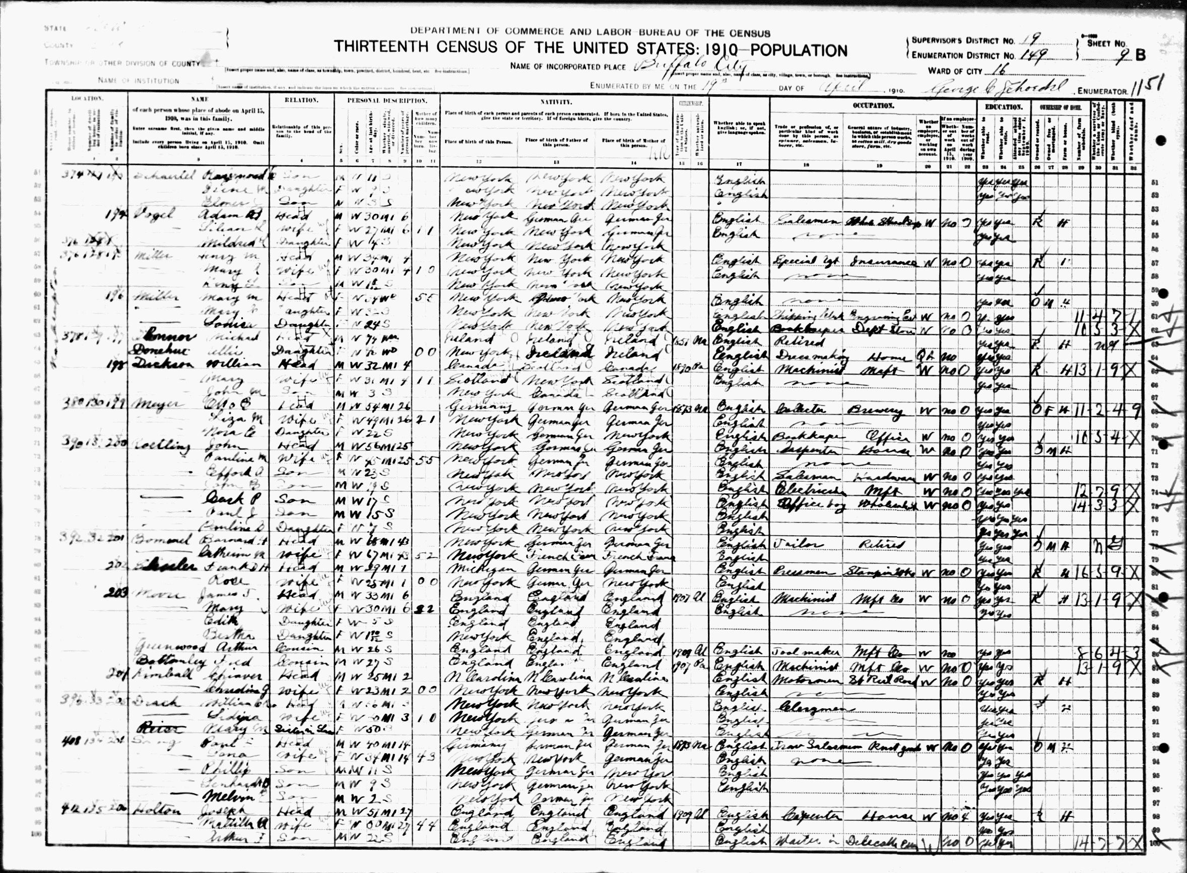 File: 1910 Buffalo Ward 16, Erie, New York; Roll T624_945; Page- 9B; Enumeration District- 149; Image- 607