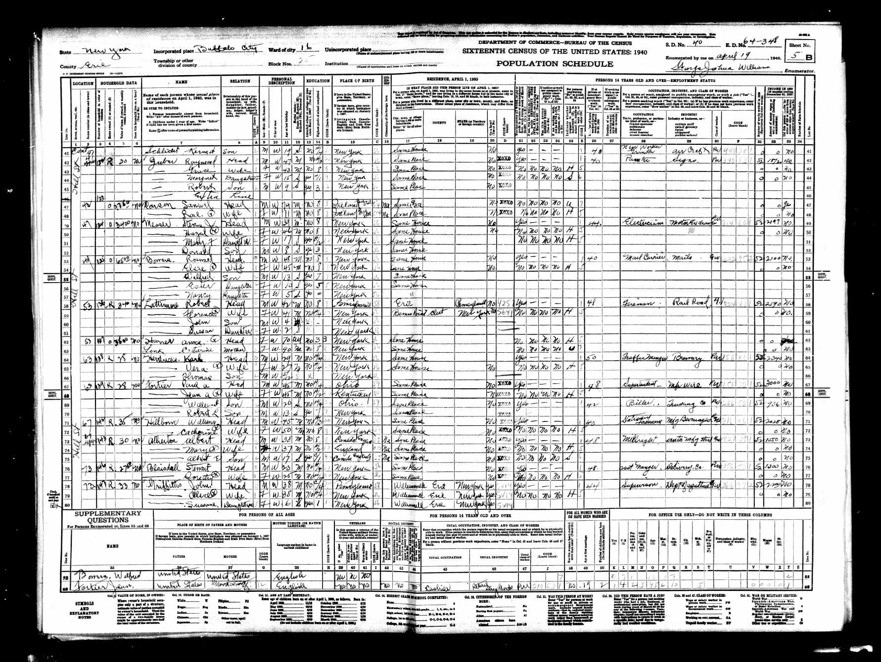 File: 1940 Buffalo, Erie, New York; Roll- T627_2833; Page- 5B; Enumeration District- 64-348