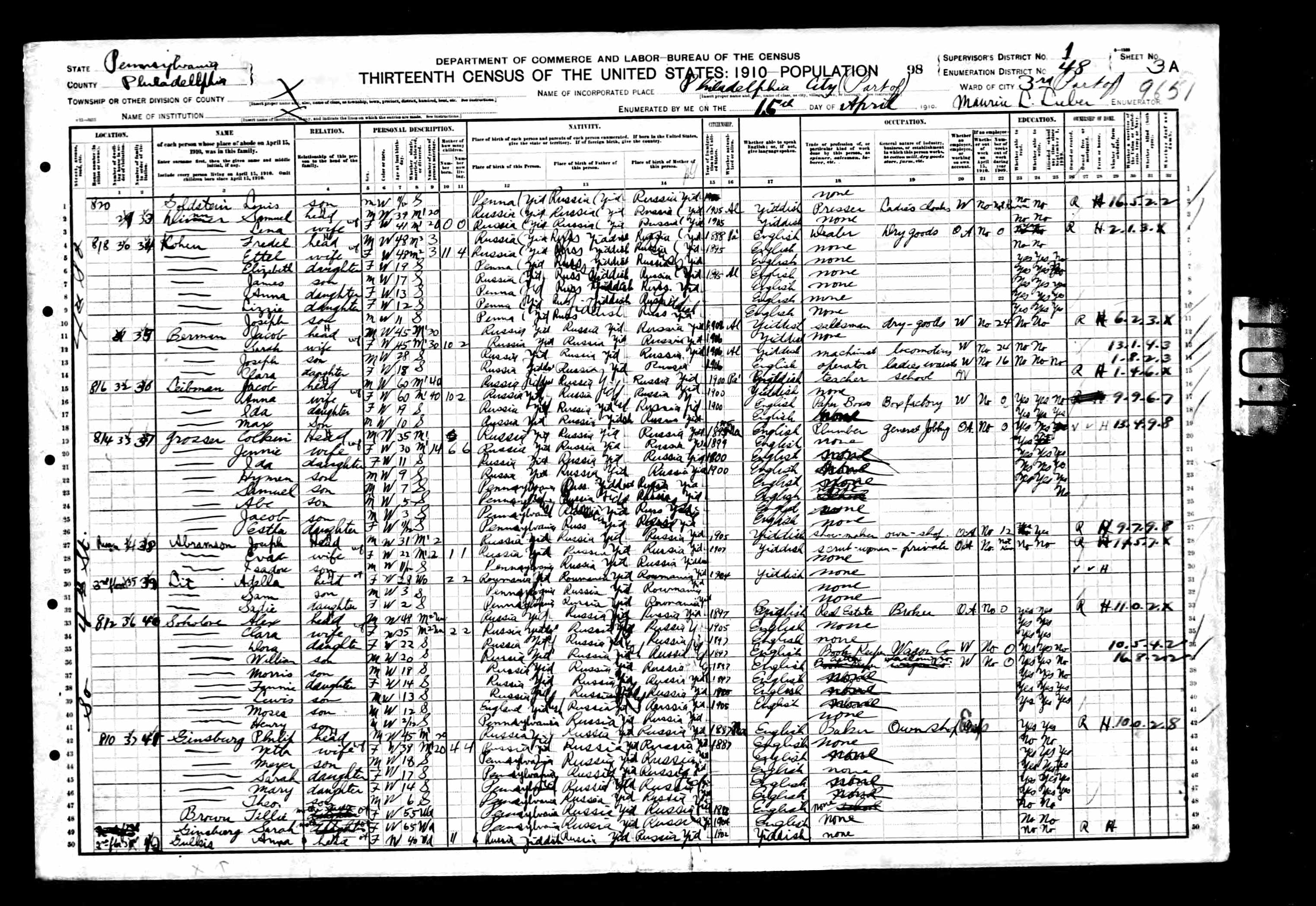 530. “1910 Philadelphia Ward 3, Philadelphia, Pennsylvania; Roll- T624_1387; Page- 3A; Enumeration District- 0048; ; FHL microfilm- 1375400Des,” Philadelphia, Philadelphia, Pennsylvania, 15 Apr 1910.