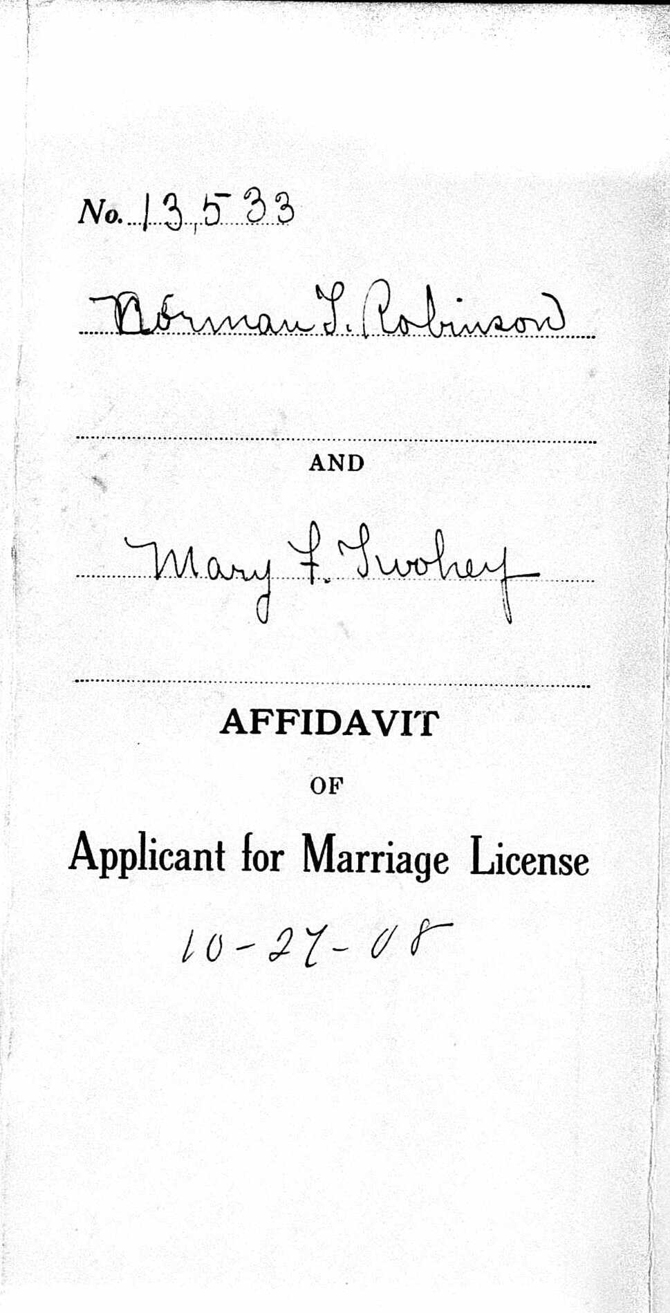 File: Norman Robinson & Mary Tuohey Marriage License Application