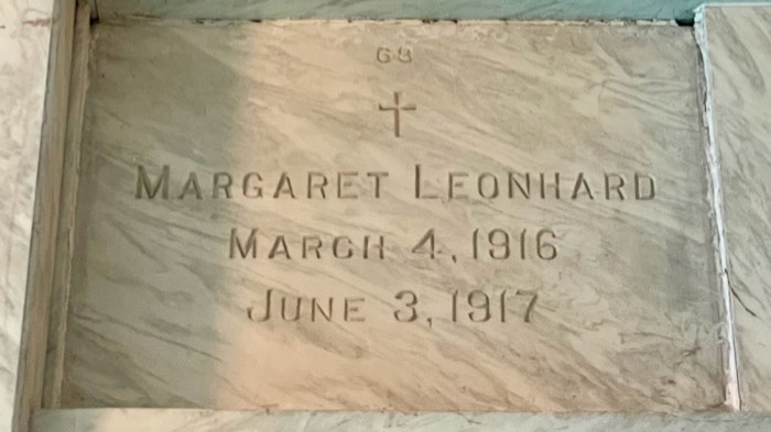 Originally entombed on 6/4/1917 but was moved to Ewing Church Cemetery on 3/21/1953.