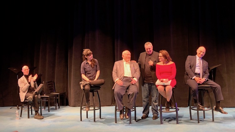 | Powerful and sobering tale about one man's struggle to keep his boyhood memories alive from his time spent in a concentration camp. Based on real peole and real events it is aimed at Holocaust Deniers who would prefer that these stories fade away. Great to see stage legends Ed Asner and Tovah Felshuh and joined by two more talented actors Liba Vaynberg and Ned Eisenberg. Only the third performance of a 4 month tour, but they nailed it. Joined on stage with playwright Jeff Cohen for Q & A. |