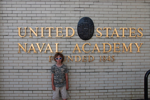 | Jack got a feel for military regimentation and ceremony as we watched the plebes' noontime formation. While he would love to get his hands on those weapons, is reluctant to commit to a military career. |